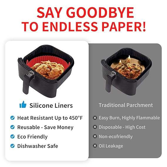 Garnitures en silicone pour friteuse 8 pouces réutilisables rouge bleu 2 packs pour 3 à 5 QT lavables au lave-vaisselle résistant à la chaleur fabriqué en Inde