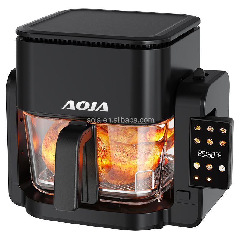 Friteuse à air carrée en verre avec visibilité panoramique à 360°, capacité portable, écran tactile vocal, multifonctionnelle, moderne, électrique pour la maison