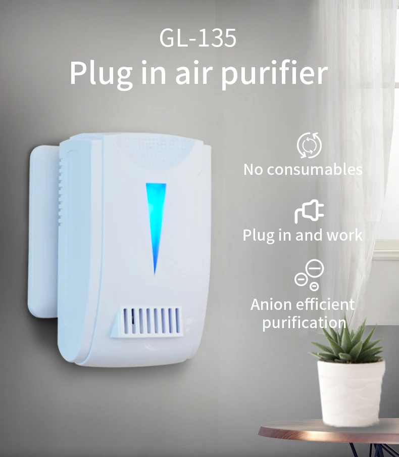 Alternative au purificateur d'air (à brancher sur prise secteur), générateur de 50 millions d'ions négatifs et de plasma, élimine efficacement la poussière, la fumée et les particules.