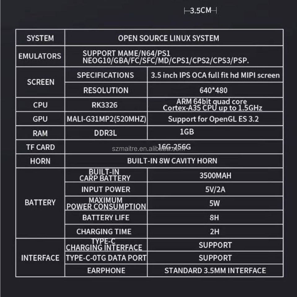 processeur:RK3326 / Processeur ARM 64 bits Cortex-A35 jusqu'à 1,5 GHz