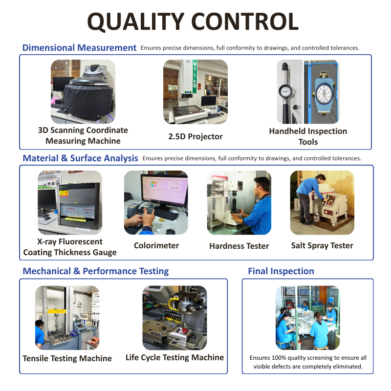 Comprehensive Quality Testing:Tensile, Salt Spray, Life-cycle, Hardness Testing