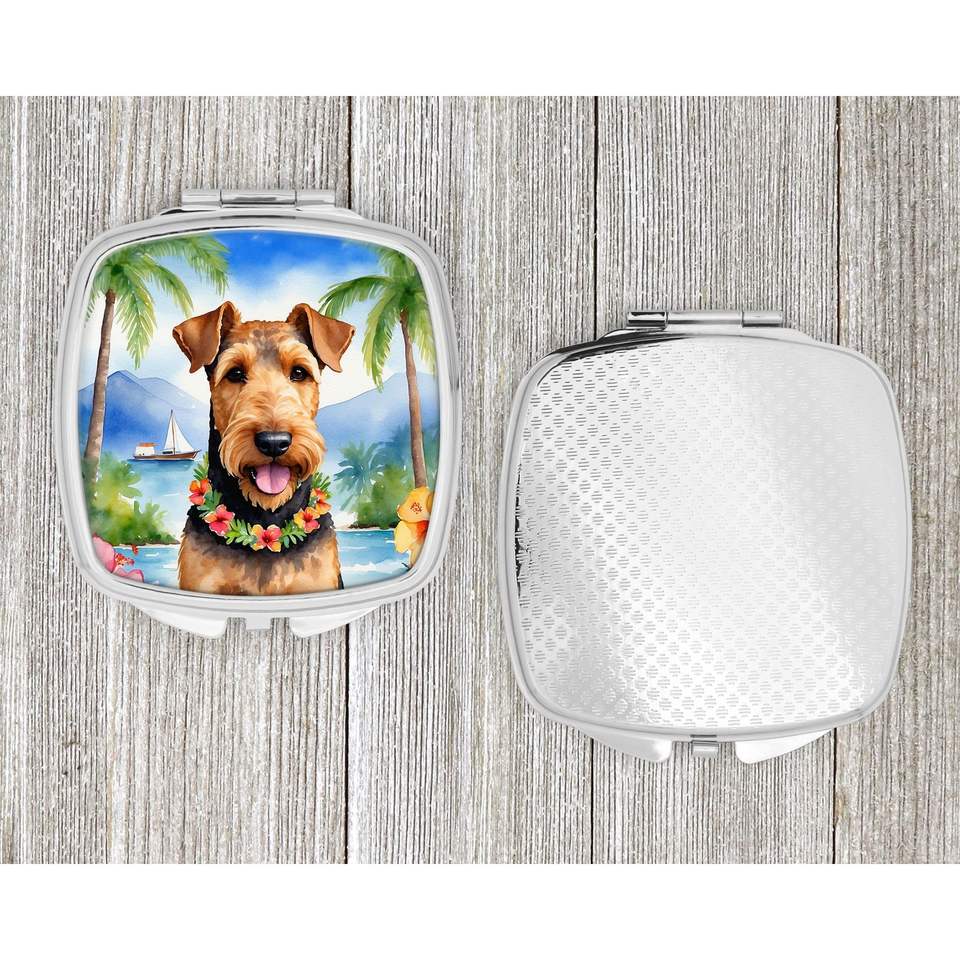 Airedale Terrier Luau Miroir de maquillage compact et pliant à main Cadeau décoratif de voyage de poche portable pour femmes et filles