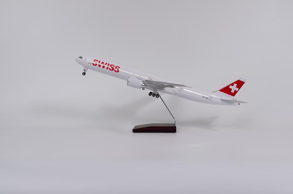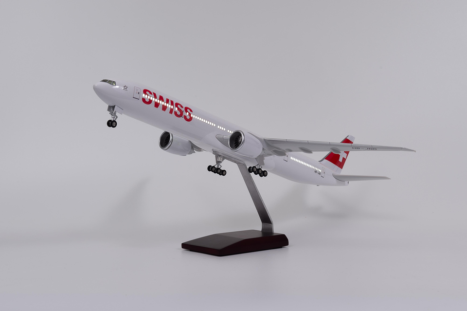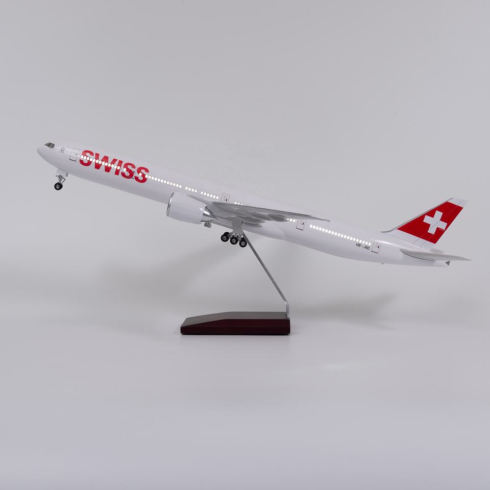 Modèle d'avion avec éclairage LED, affichage statique, objet de collection, Boeing 777-300ER Swiss Air, 47 cm, 1/160