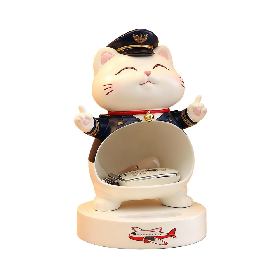 Statue de chat pilote d'avion - Figurine en résine personnalisée pour le rangement amusant, idéale pour le bureau et l'entrée, parfaite pour ranger les clés et les bibelots