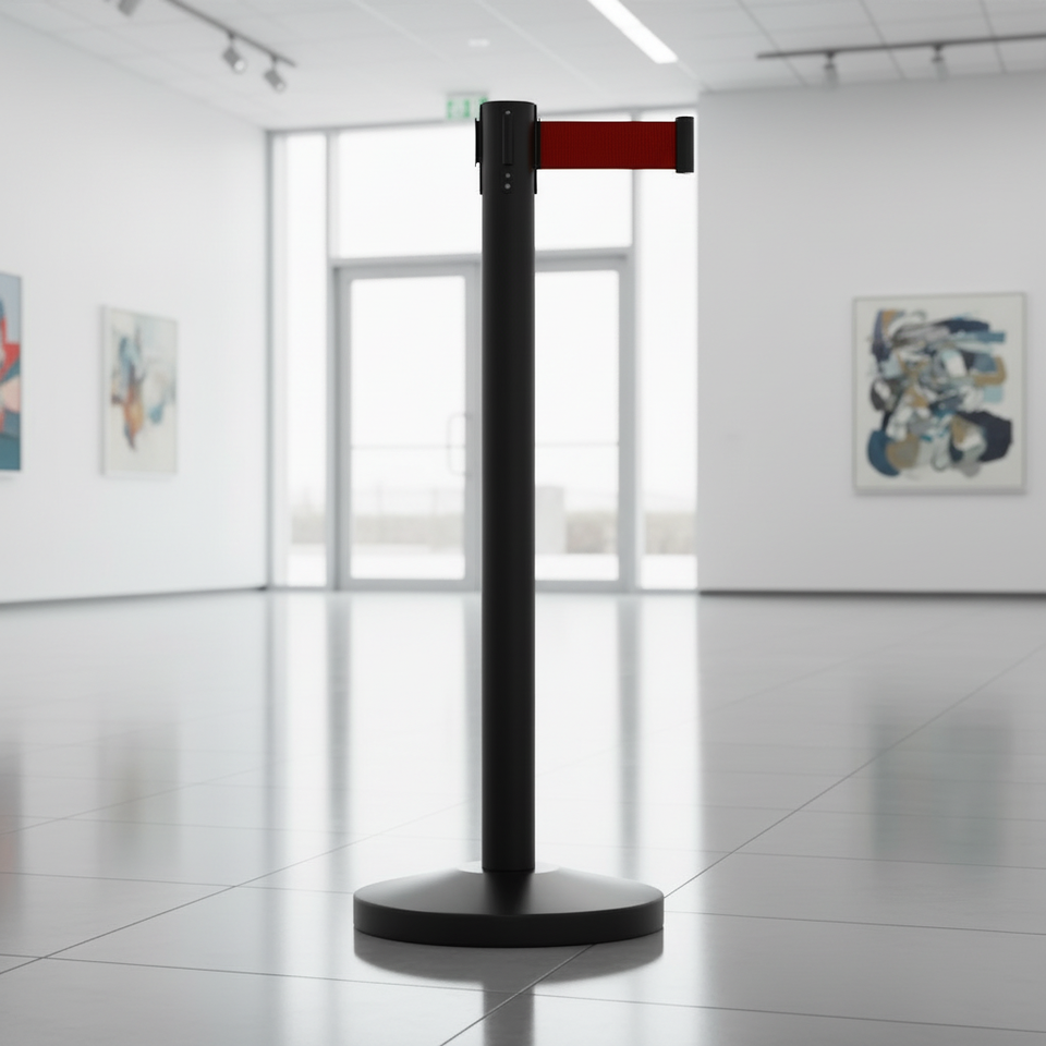 Barrière de gestion de foule à bande rétractable pour file d'attente d'aéroport, avec support au sol en acier inoxydable et poteau de guidage, barrières de circulation