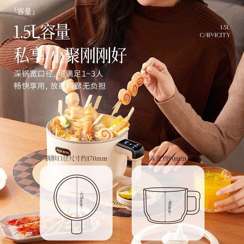 Cuisinière électrique Airsun 2L multifonctionnelle avec arrêt automatique de sécurité pour dortoir et bureau
