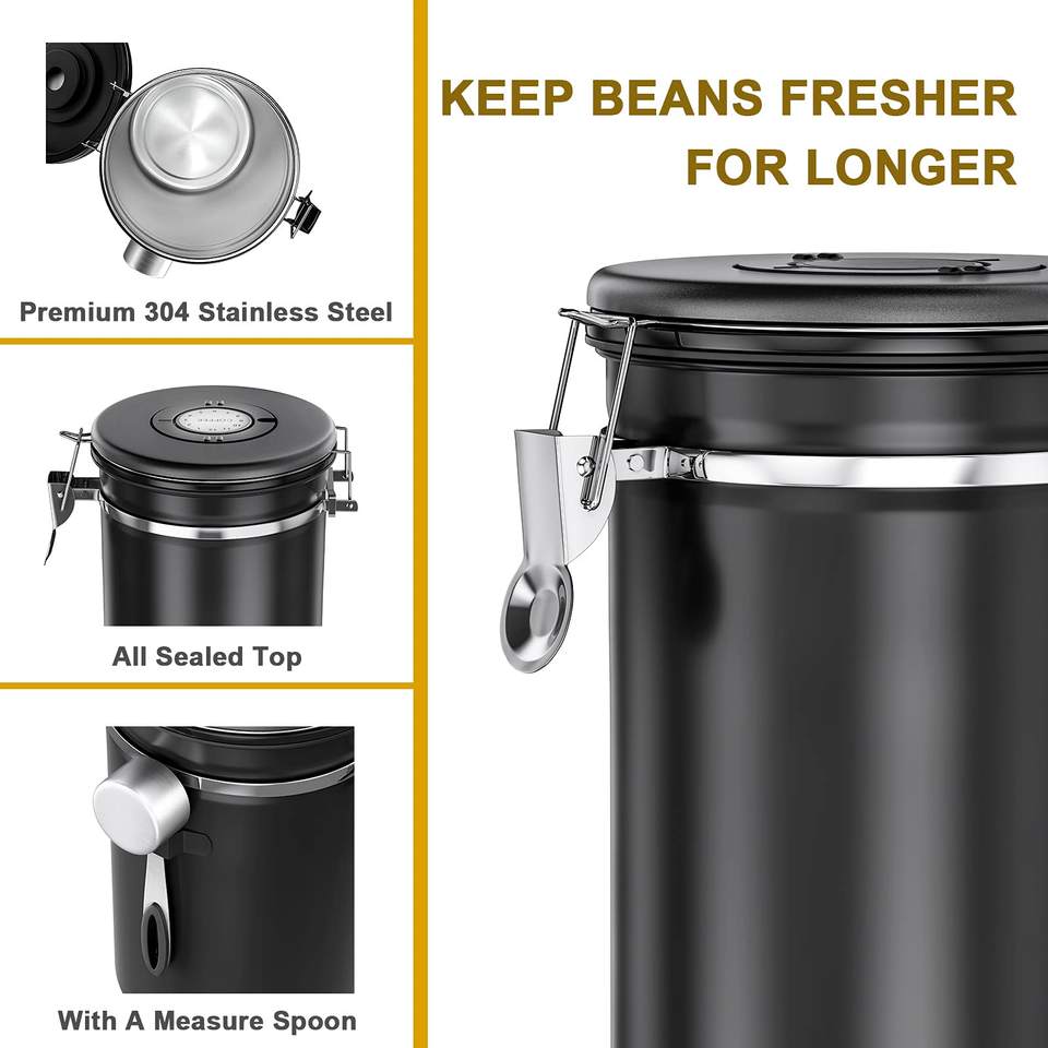 Conteneur à café Airtight Co2 Klaser Epilator Canister Tea Sugar Coffee Canisterphotoepilator Depilator Lescoltonainless Steel