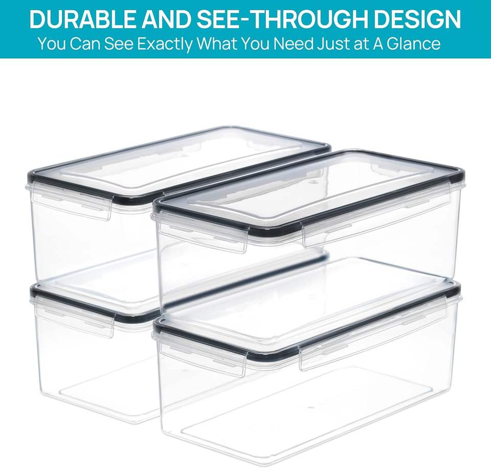Contenants de stockage alimentaire hermétiques avec couvercles, lot de 4, 3,2 L, boîtes à spaghetti en plastique pour l'organisation des pâtes, organisation du garde-manger
