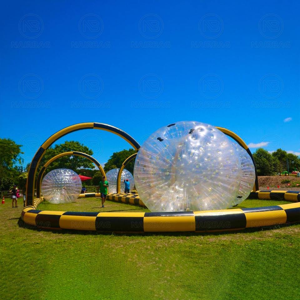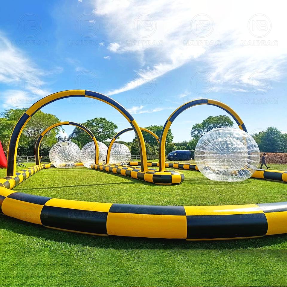 Circuit de course de karting gonflable hermétique, circuit de course de voiture gonflable, circuit de course de ballon zorb humain à vendre, jeux d'intérieur pour enfants