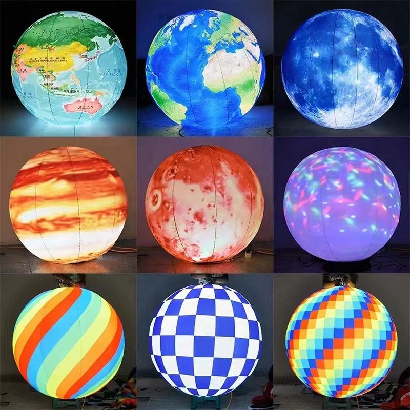 Ballons gonflables en PVC étanches à l'air avec lumière LED, planètes Terre, Soleil, Lune, Saturne et Mars, couleur personnalisée, taille 1m-5m, impression UV, durables