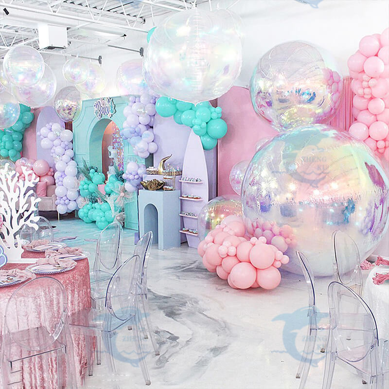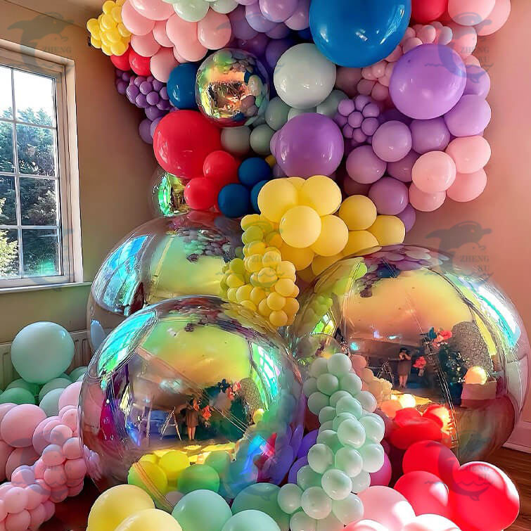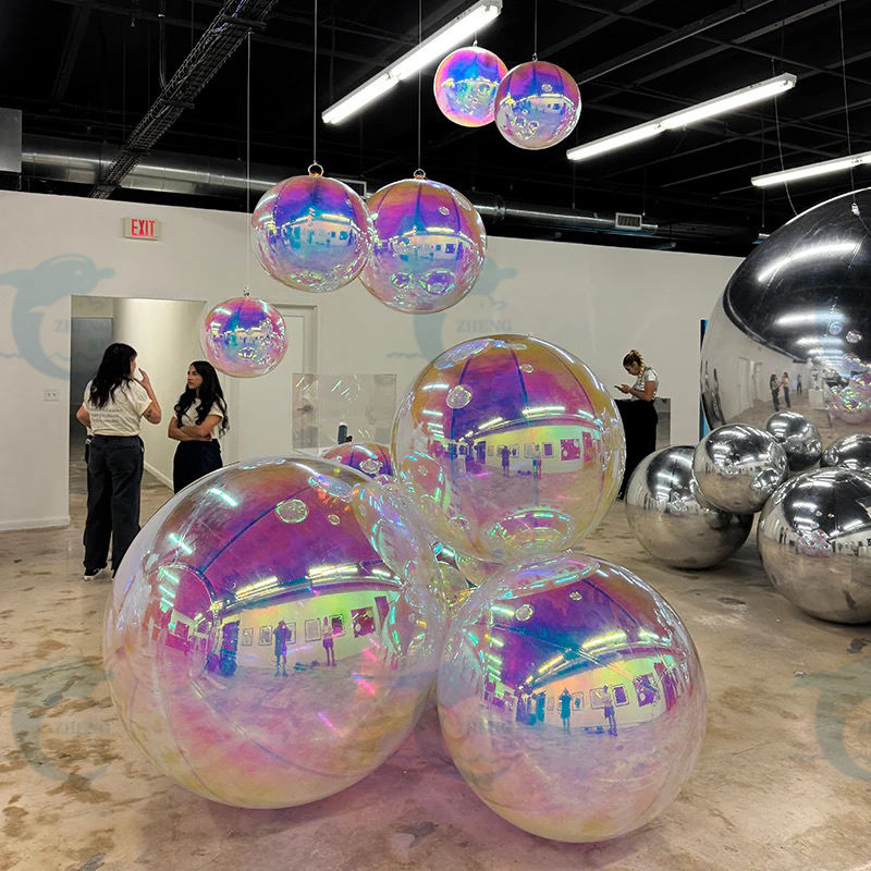 Hermétique Argent Or Irisé Grand Brillant PVC Miroir Réfléchissant Sphère Boule Gonflable Arc-en-ciel Ballons Suspendus