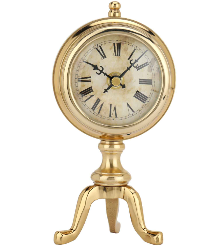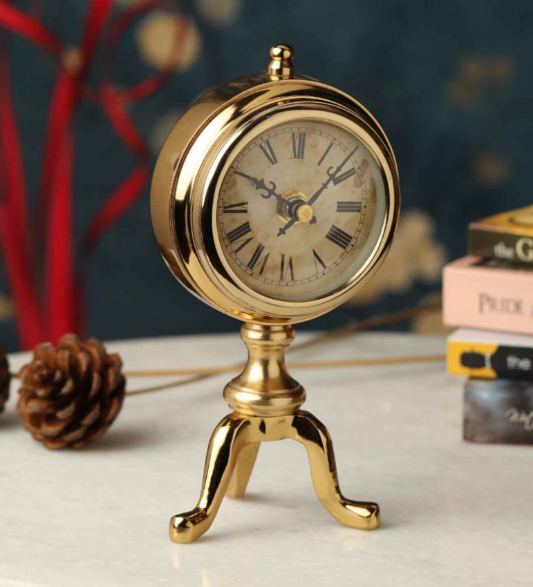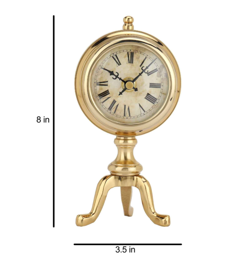Ak Brass Contemporary Charm: Modern Gold Metal Desk Clock Enhancing Home Decor Copper Glow