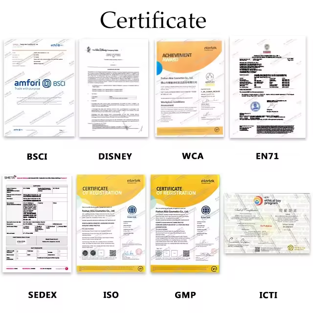 Certificat:ICTI,GMPC,ISO22716,IETP,GSV,WCA,ASTM,EN71
