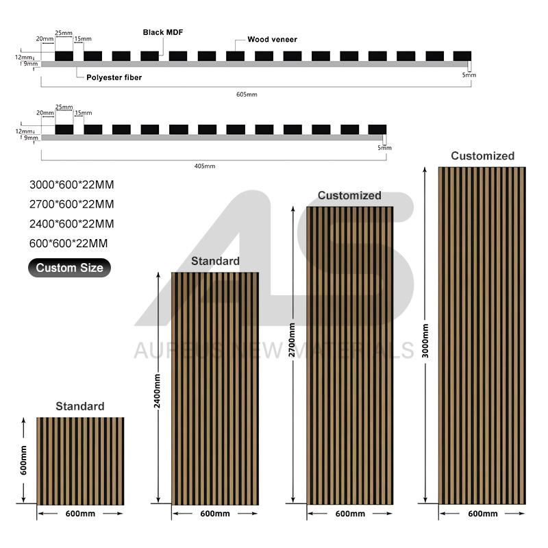 Akustik Panneaux muraux à lattes en bois MDF de haute qualité Feutre acoustique insonorisé pour la décoration intérieure du salon et de la chambre à coucher