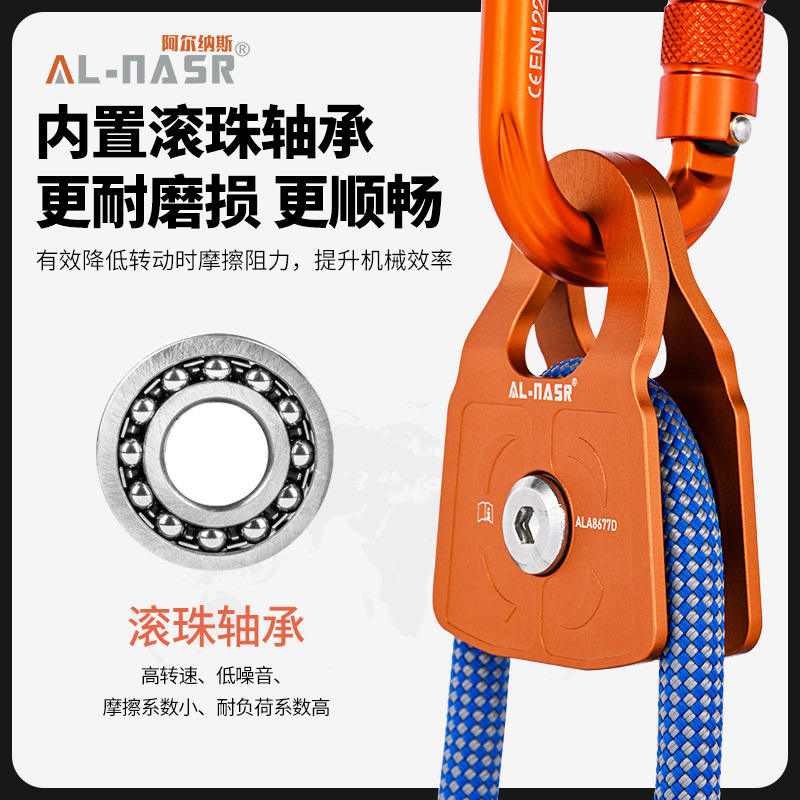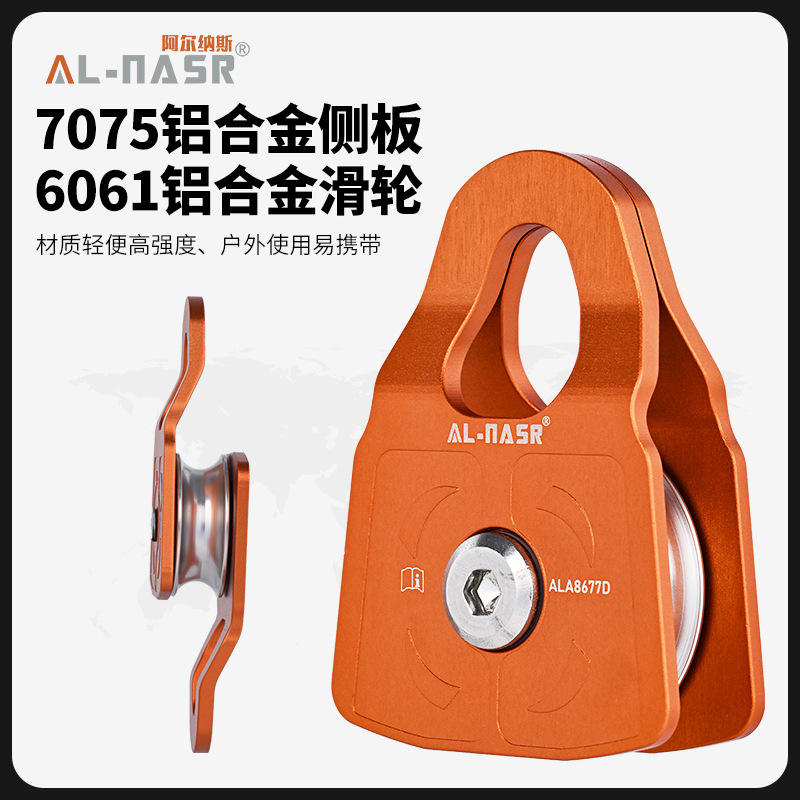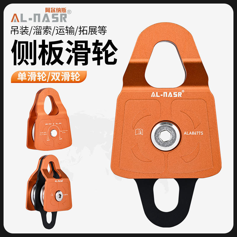 Poulie latérale Al-Nasr simple/double en alliage d'aluminium pour l'escalade, le sauvetage, le levage, le transport et l'équipement de tyrolienne