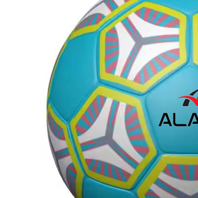 Ballon de football personnalisé Alaay Wholesale, design officiel coloré, couverture en PVC cousue à la machine, taille personnalisée, imperméable et durable.