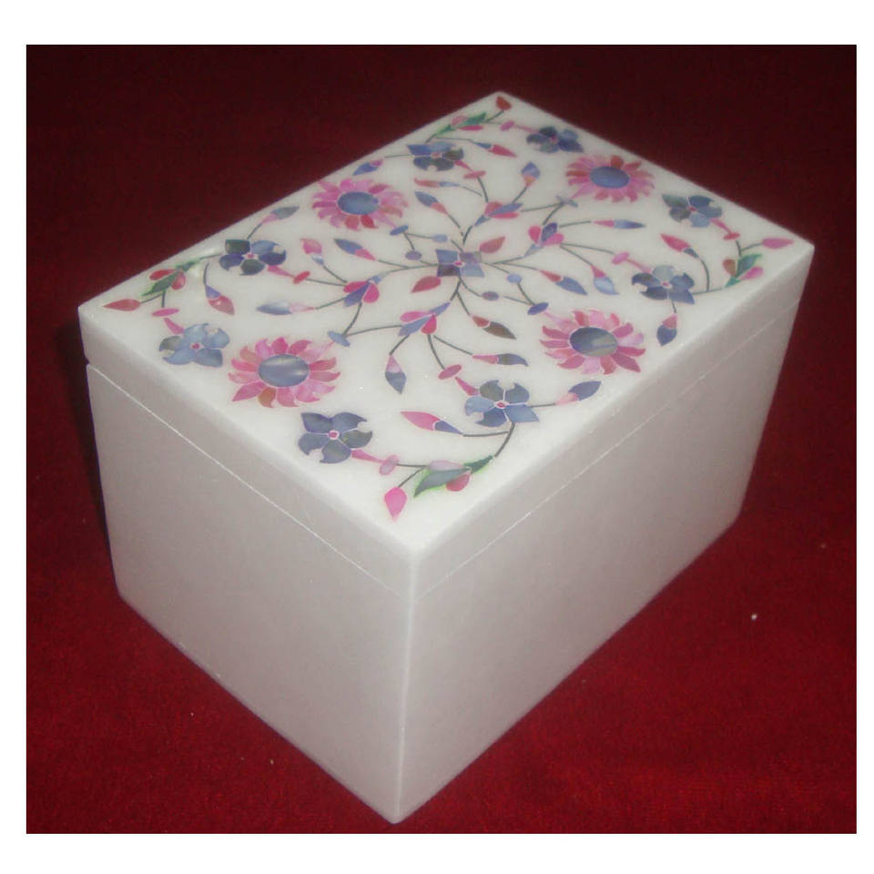 Alabaster White Marble Pink & Blue Mother Of Pearl Flower Design BoxProduct Name