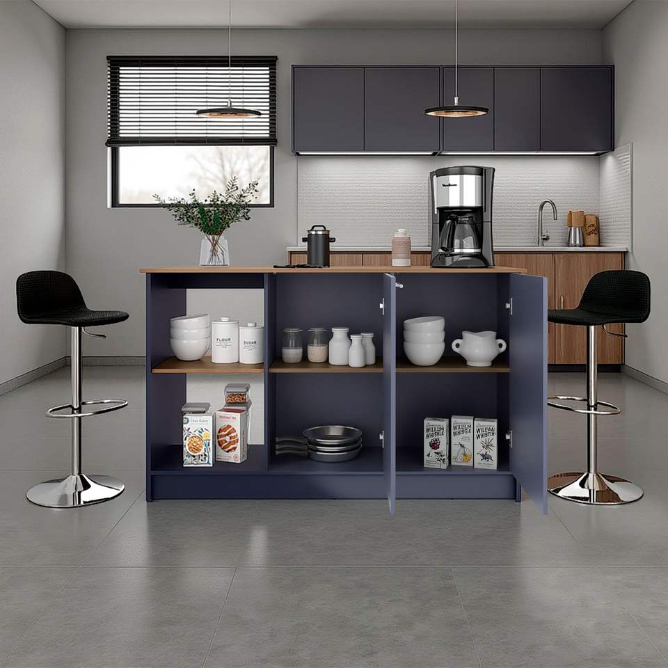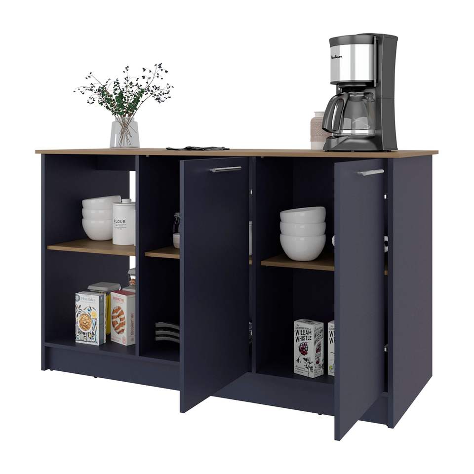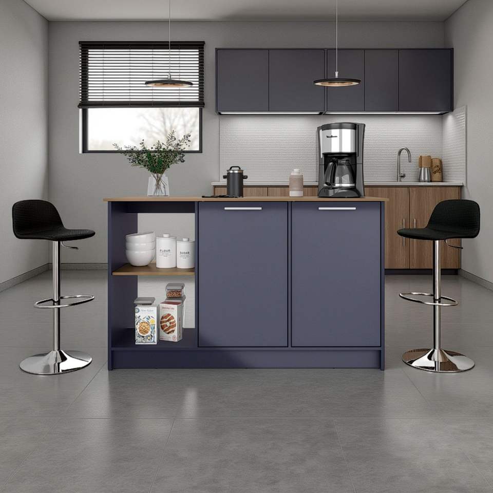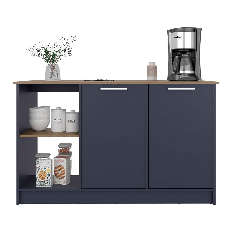 Îlot de cuisine Alana avec 2 portes et 6 étagères, catégorie de produits : chaise de bar