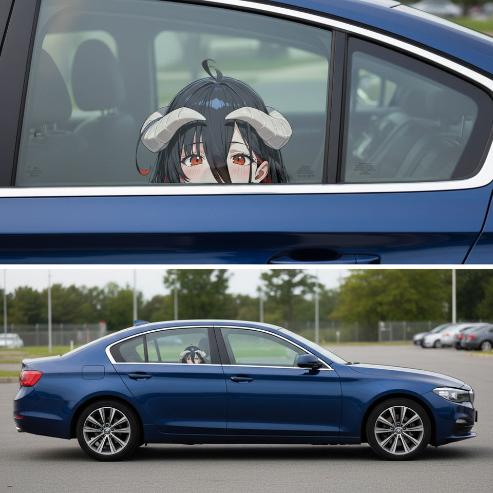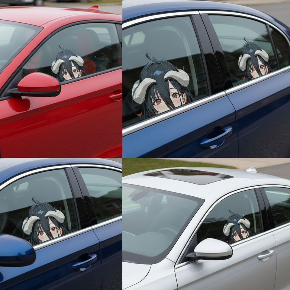 Autocollant de voiture Albedo Peeking, autocollant imperméable sur le thème de l'anime Overlord, personnage de fille démon mignonne pour la décoration de voiture, camion, SUV, fenêtre, pare-chocs