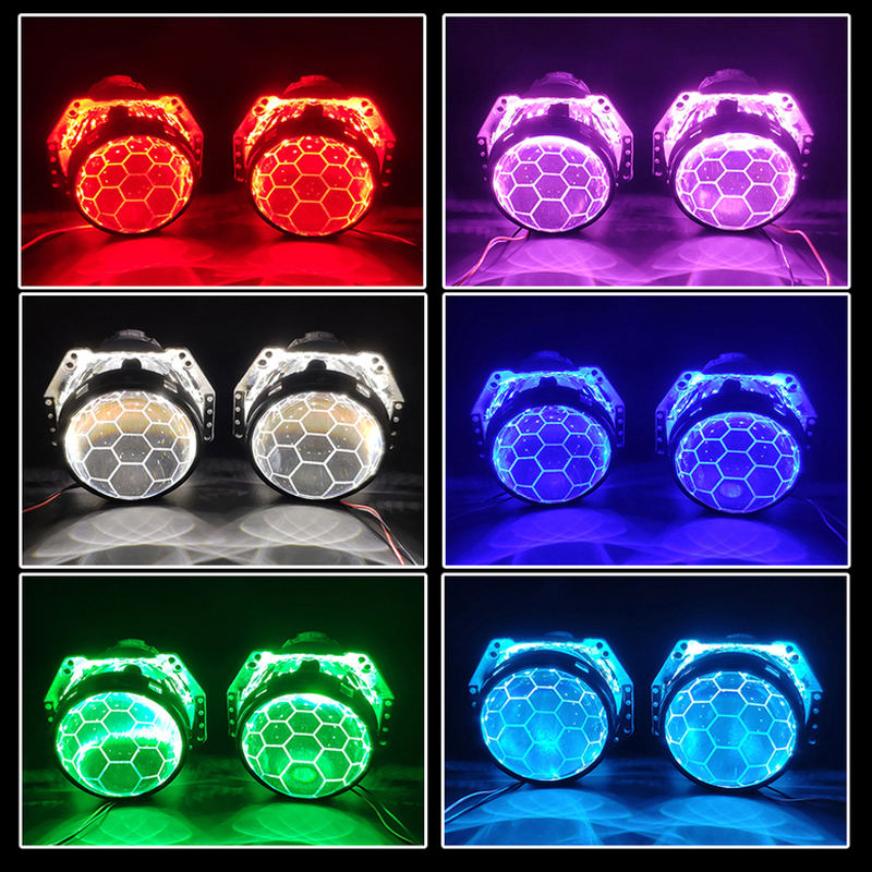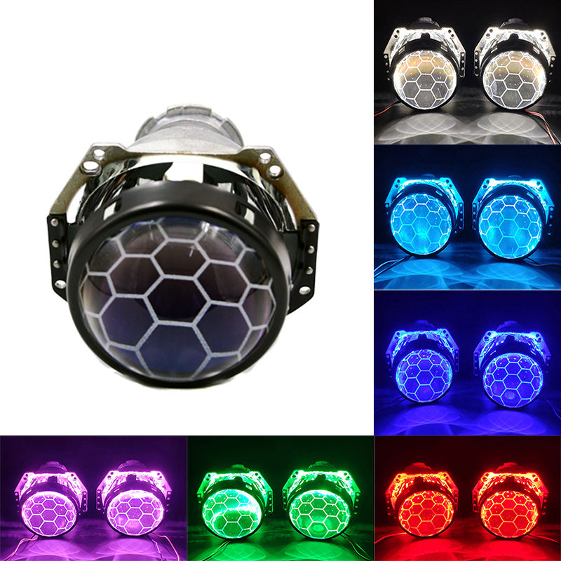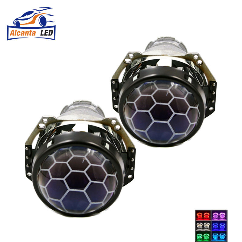 AlcantaLED 3.0 pouces D1S D2S Phare de voiture Hella 3/5 G5 Bi-xénon Lentille de projecteur Nid d'abeilles Football Bleu Verre Aluminium Rétrofit