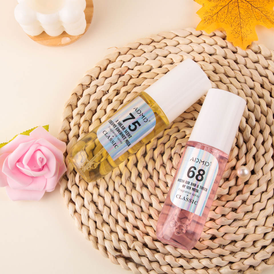 Parfum sans alcool, senteur fruitée boisée, logo laser, chiffres arabes, longue durée