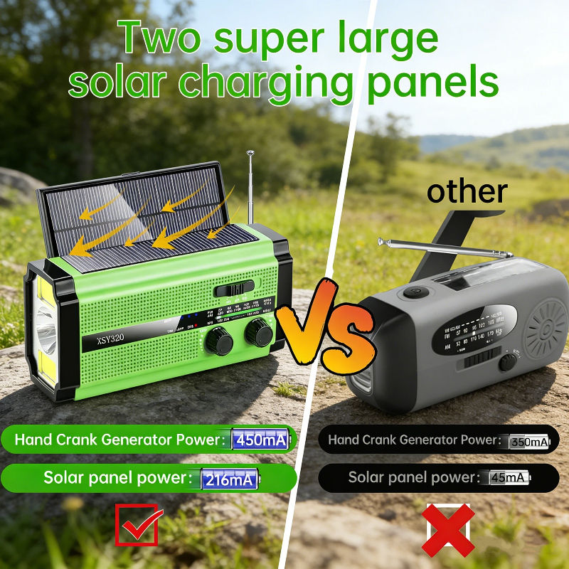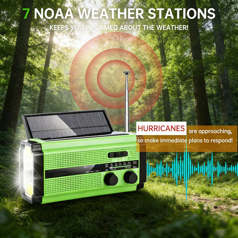 Radio d'urgence Alecter APH-SR24, essentielle pour la survie, toutes situations, solaire, manivelle, batterie externe 5000mAh USB-C, AM/FM/NOAA, météo, SOS