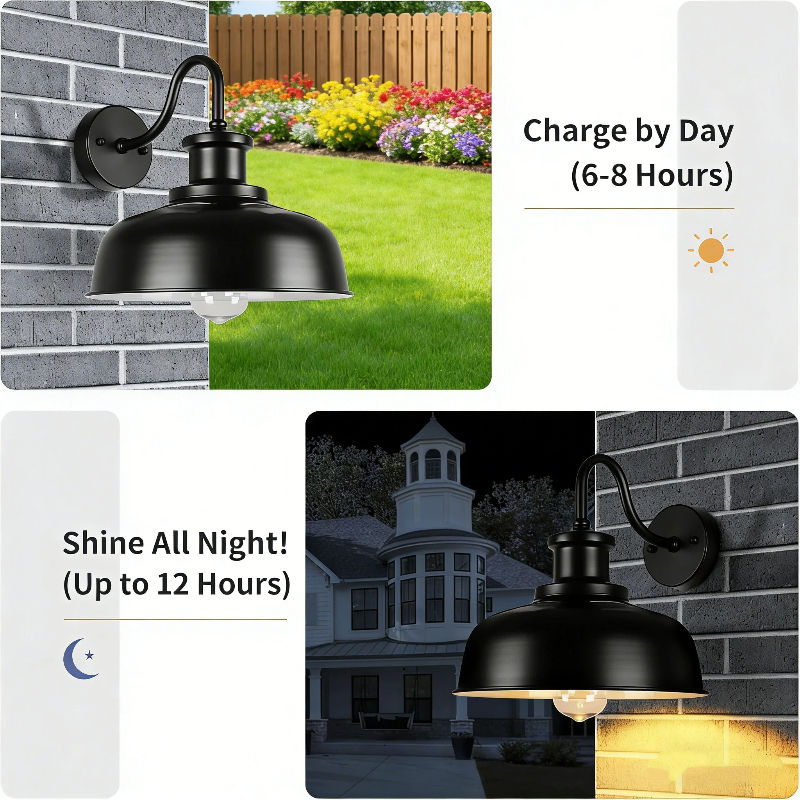 Lampes solaires d'extérieur Alecter Solar APH-L138, lampes de grange solaires, IP65, étanches, vintage, en métal, LED 4100K, blanc neutre, appliques murales pour garage