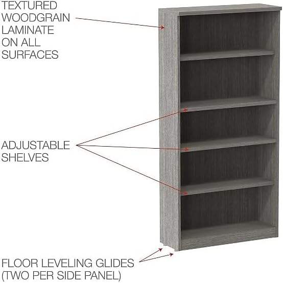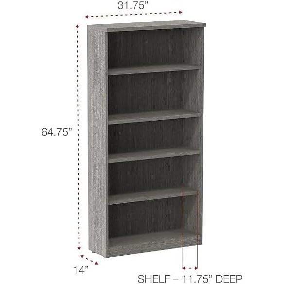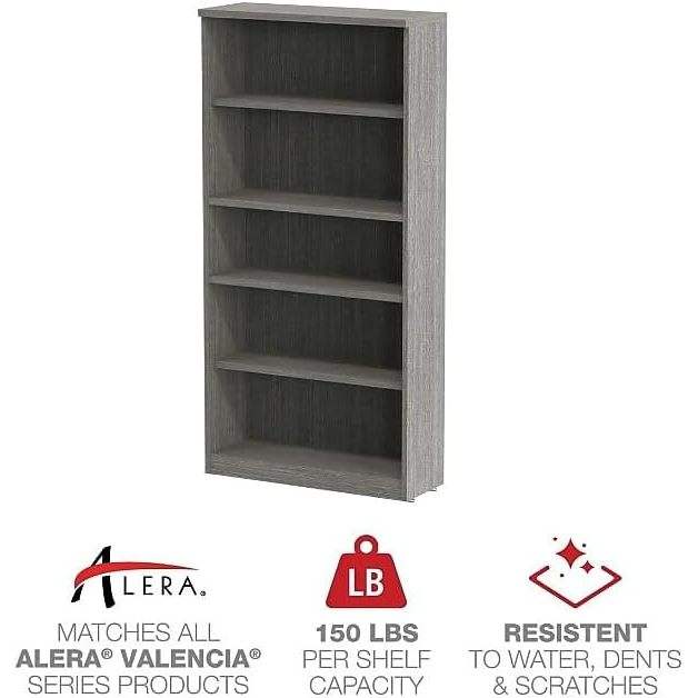 Bibliothèque à cinq étagères Alera Valencia Series, gris rustique, 31,75 l x 14 prof x 64,75 h, pour bureau à domicile ou salon