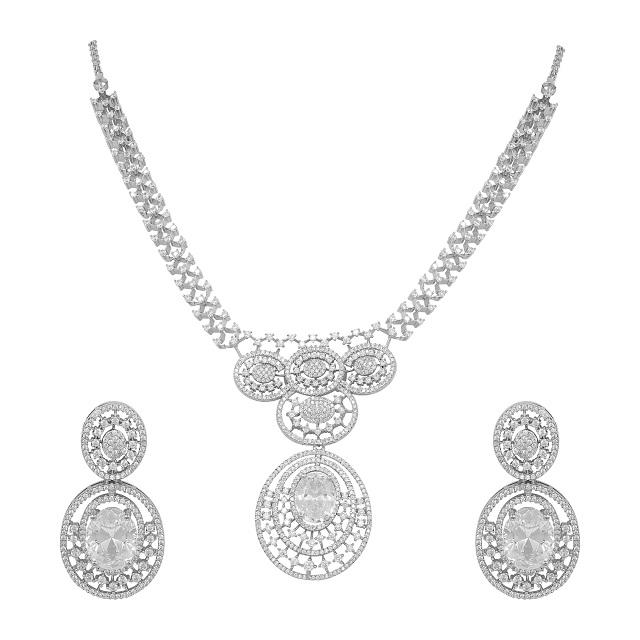Alex Jewellery -Oval Radiance Delight AD Collier ras du cou avec boucles d'oreilles Ensemble de bijoux pour femmes et filles