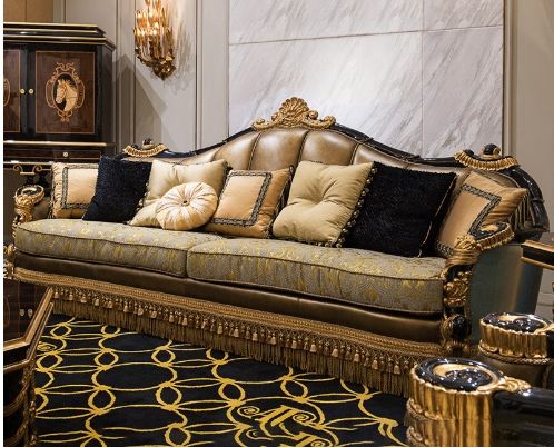 Canapé en cuir européen Alexander, combinaison de meubles de luxe pour grand salon de villa, style néoclassique, canapé en bois massif sculpté