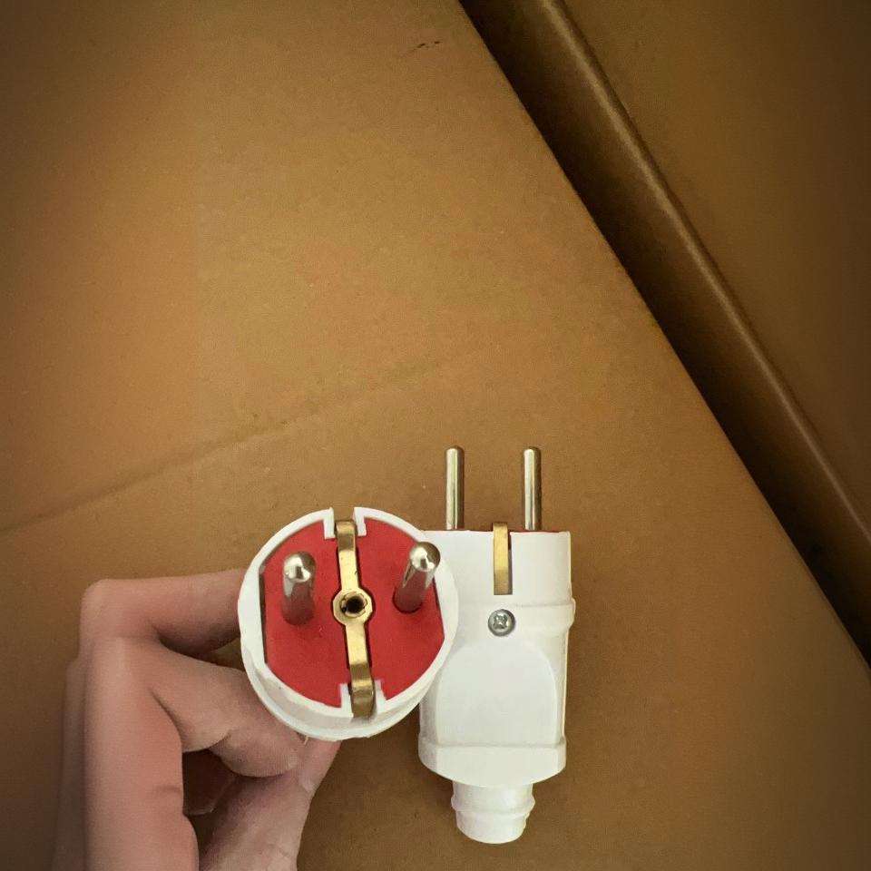 Prise mâle standard européenne Alfa 16A 250V avec mise à la terre, pieds en fer et cuivre, 50 pièces, plastique blanc, fabriqué en Turquie