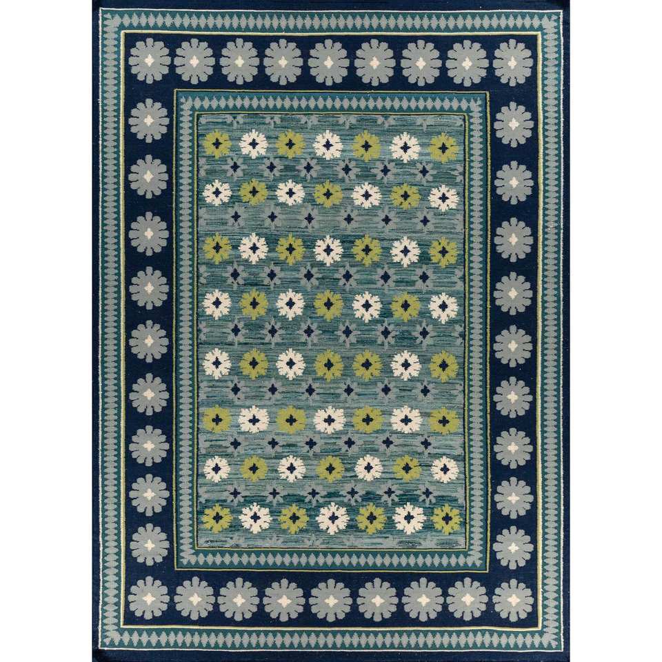 Tapis en laine géométrique classique bleu Alhambra, tissé à la main, en viscose, pour la maison, le salon, le couloir, tapis rectangulaire - ADWL-13172