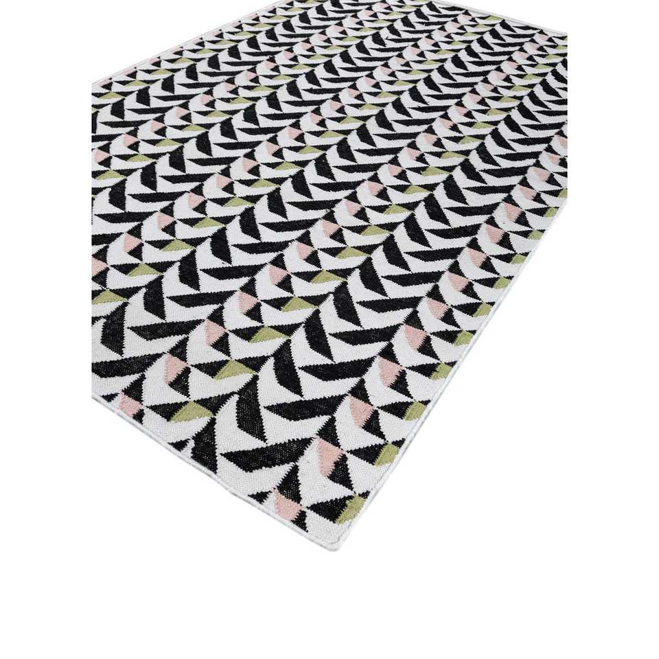 Tapis en laine tissée plate Alhambra gris et noir, motif géométrique abstrait, pour la maison, tapis en jute pour couloir, chambre, rectangulaire, rayé - ADWP-13073