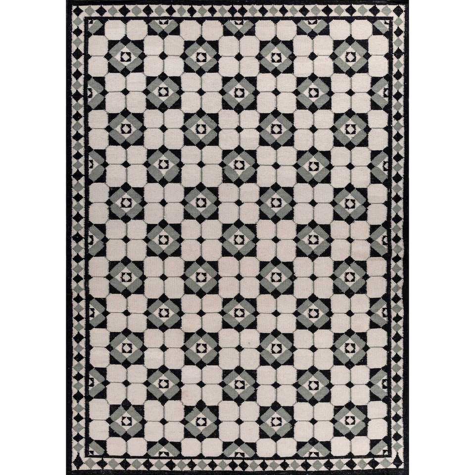 Tapis en laine tissée plate Alhambra ivoire, motif géométrique, 9x12, rectangulaire, pour salon, tapis de couloir en viscose, modèle puzzle - ADWL-13165(CS-01)