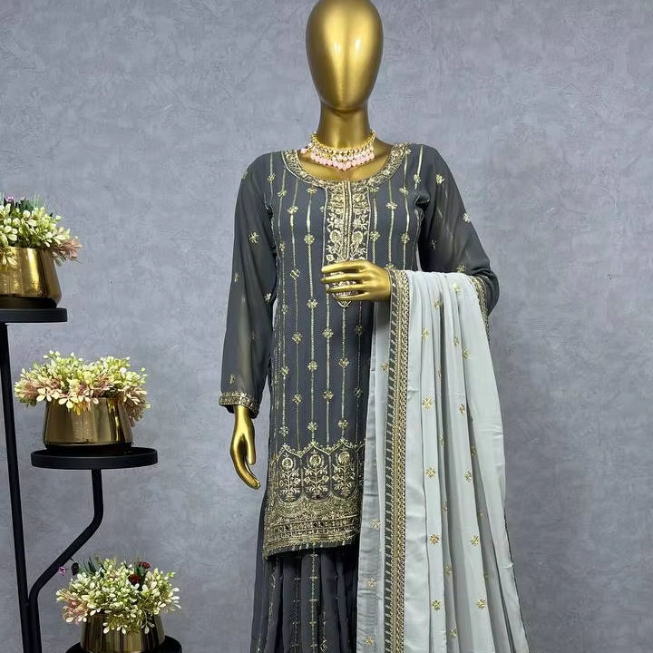 *PLAZZO FABRIC*AND LENTH:HEAVY FAUX GEORGETTE . 40-42 inch(Full stitched)