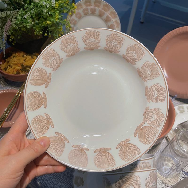 Set de vaisselle en céramique Alice Creative Nordic Ins Style Light Luxury Bean Sand Porcelain Bowl Plate Combination Oval Pattern