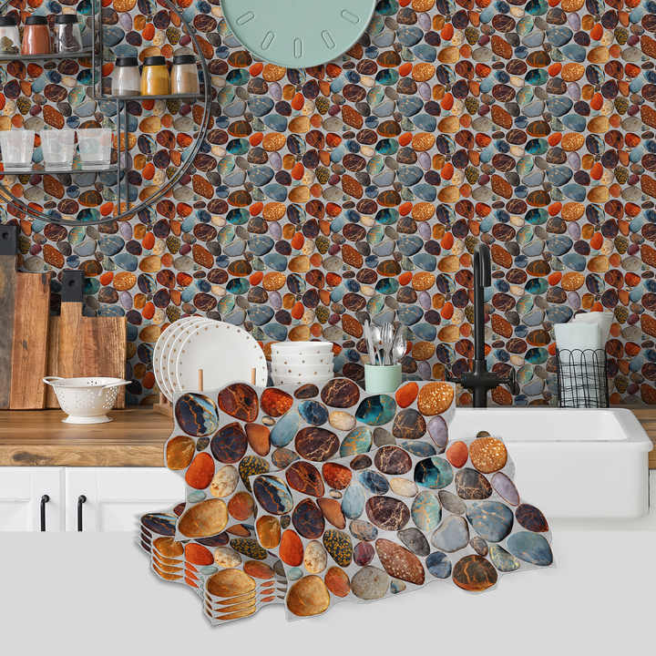 Carreaux Alien Imitation Galets PVC Imperméable Résistant à l'Huile Autocollants Muraux Modernes Auto-adhésifs pour Salon Hôtel Salle de Bain