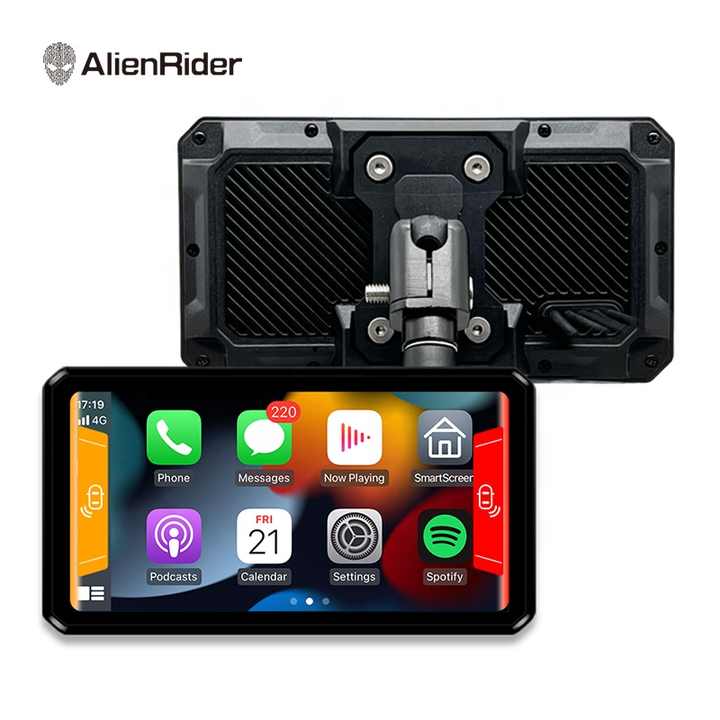 AlienRider M2 Pro Moto CarPlay Android Auto Navigation Enregistrement Double Caméra de Tableau de Bord avec Écran Tactile de 6 Pouces Radar 77 GHz