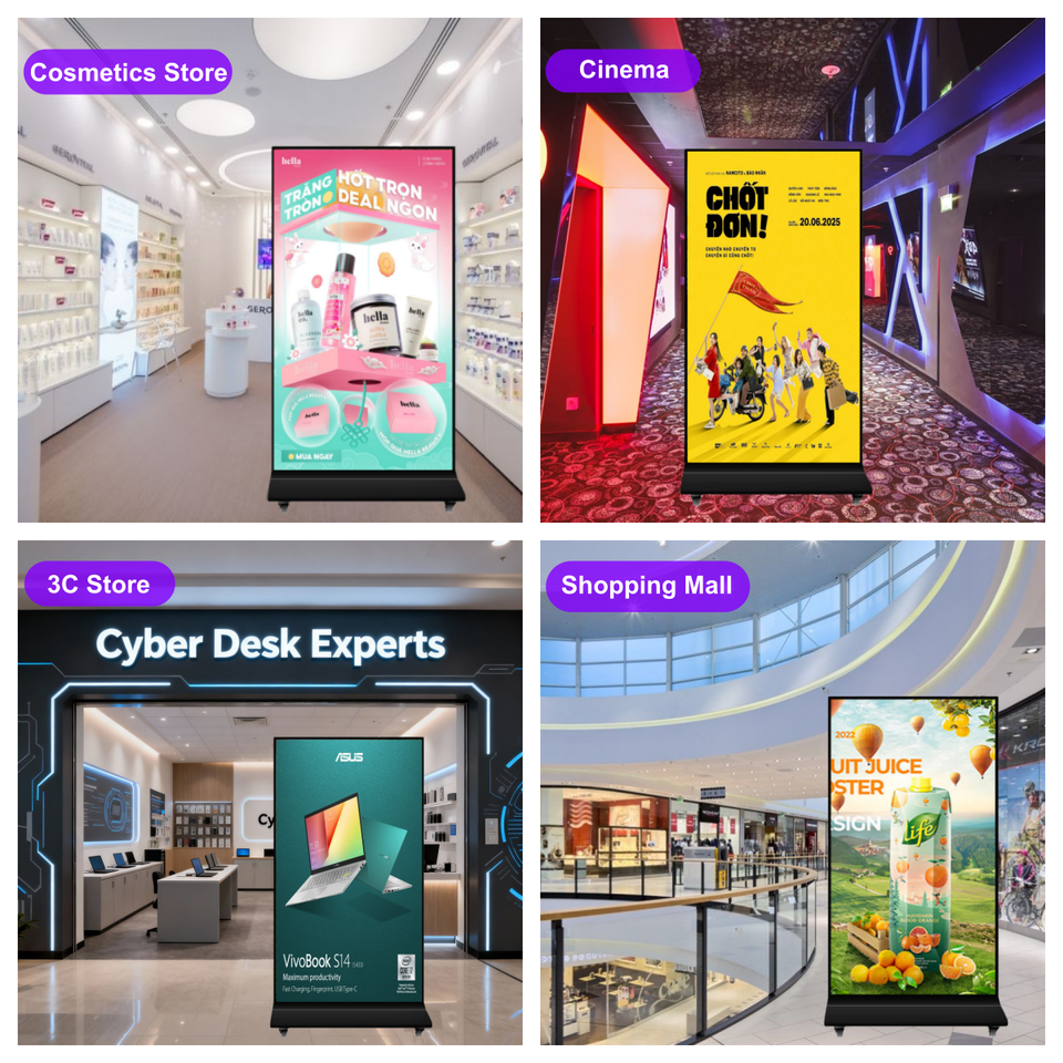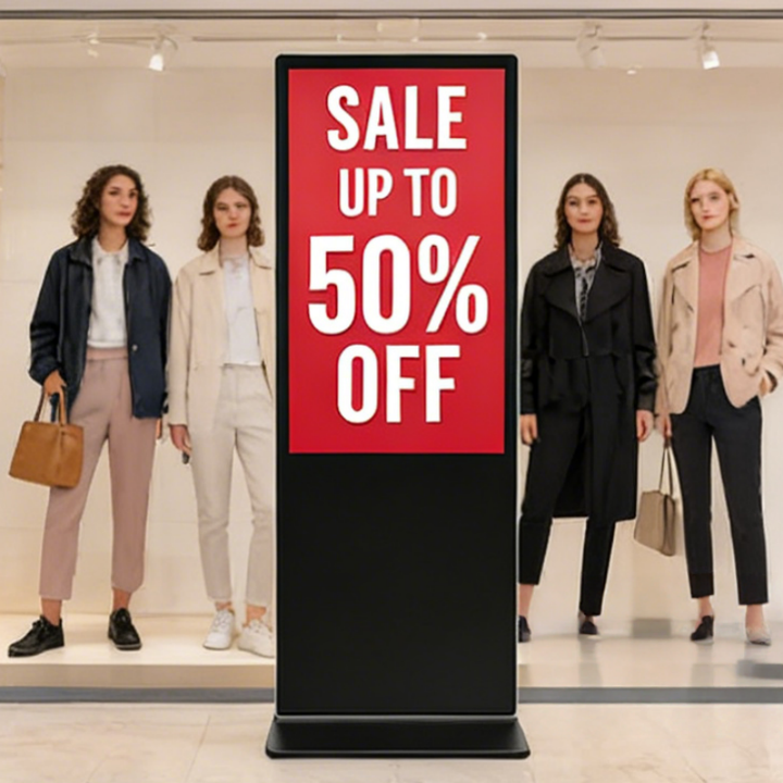 Kiosque tactile horizontal Android Alihh 43 pouces, écran vidéo, support autoportant pour magasin de détail, animation