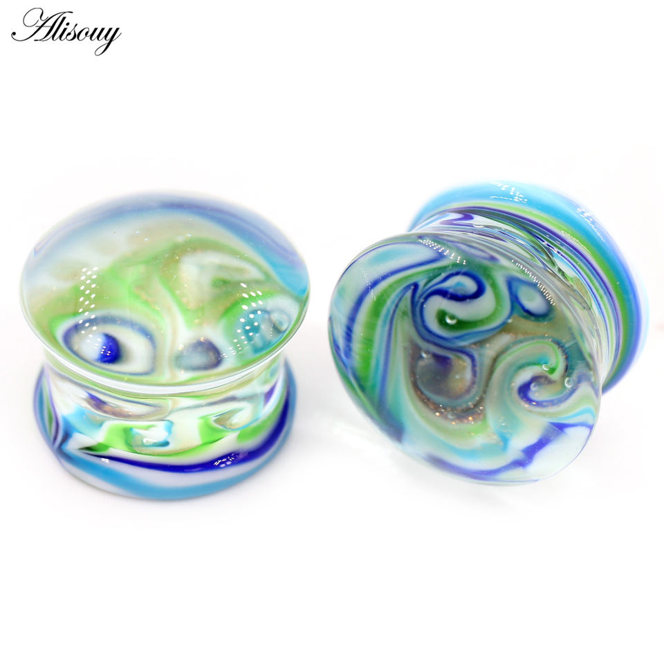Alisouy 2PCS Colorful Love Heart Round Glass Ear Plugs Tunnels Guges Stretcher Expander Extender Earrings Piercing Body Jewelry