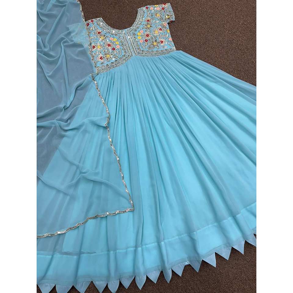 Aliya Cut Gown & Dupatta with Elegant Embroidery Sequins Work for Evening Occasions