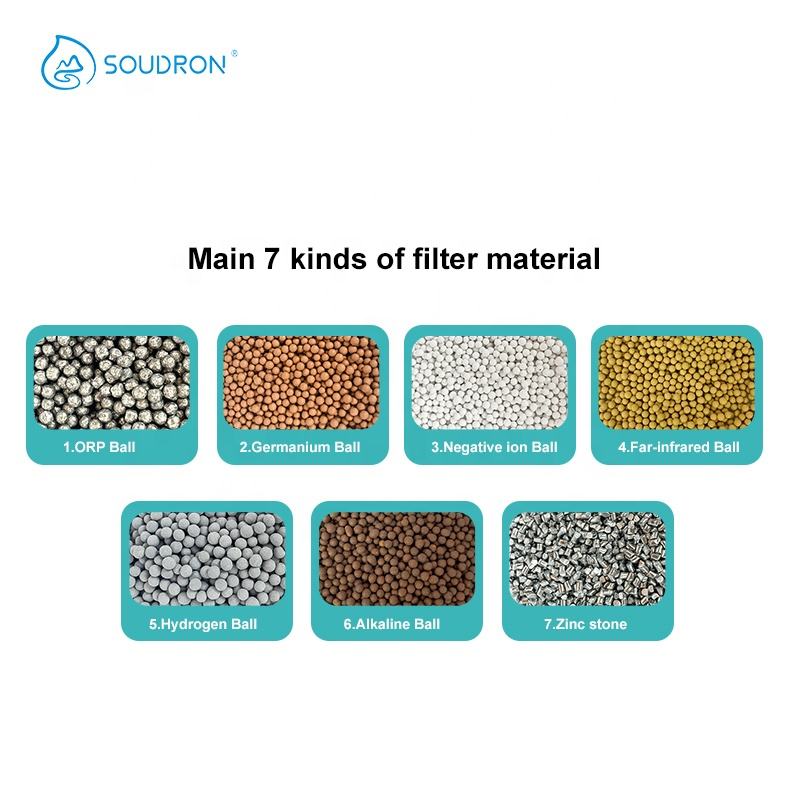 Filtre à eau alcaline pH 9.5 Kangen 7 types d'éléments minéraux ORP Zinc Ball ioniseur sain eau potable 4in1