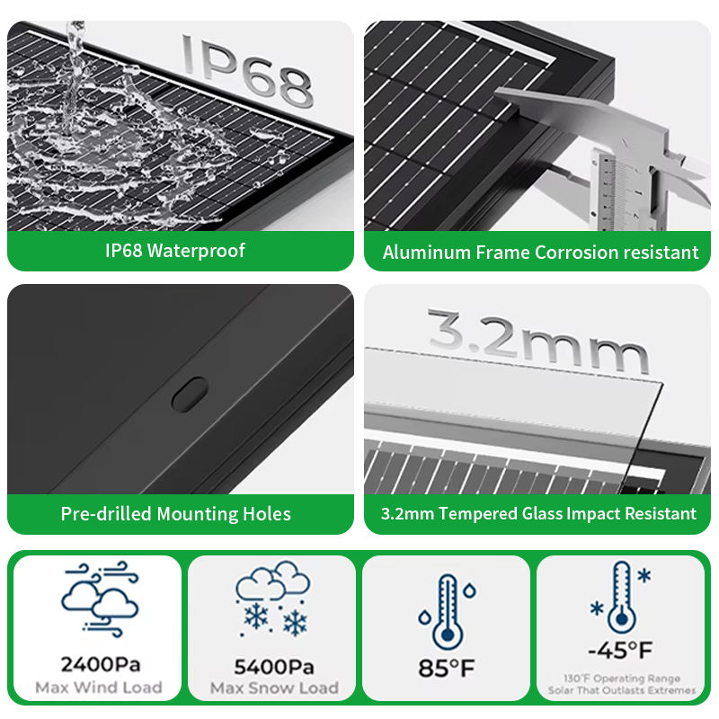 Panneau solaire tout noir 425 watts, esthétique, module PV mono PERC, source d'usine, service OEM ODM, en stock, livraison rapide, professionnel
