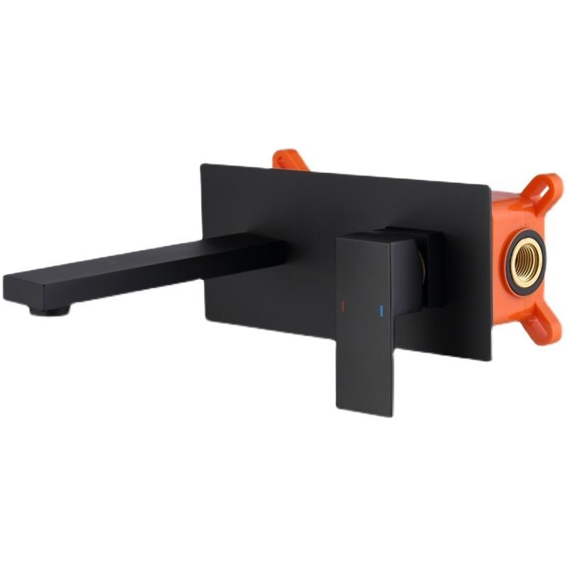 Robinet de lavabo dissimulé noir tout cuivre Robinet de lavabo encastré pour hôtel, prise murale chaude et froide