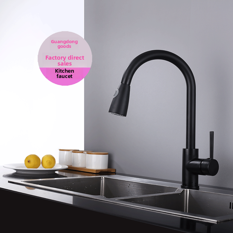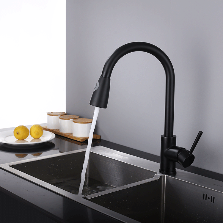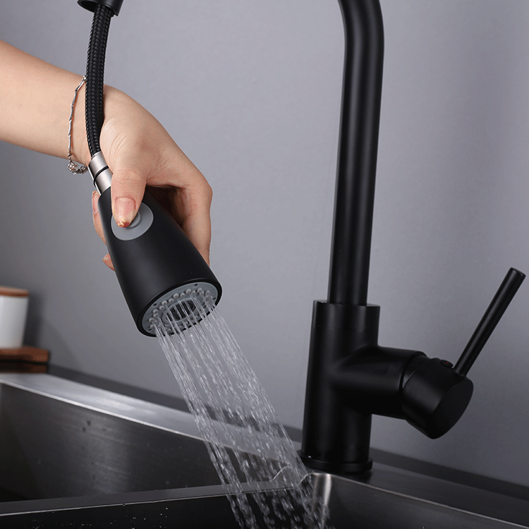Robinet de cuisine tout en cuivre noir, extractible et rotatif, pour eau chaude et froide, avec pomme de douche, robinet de lavabo de salle de bain