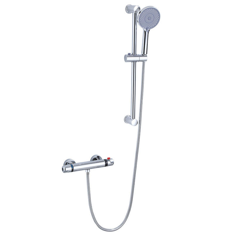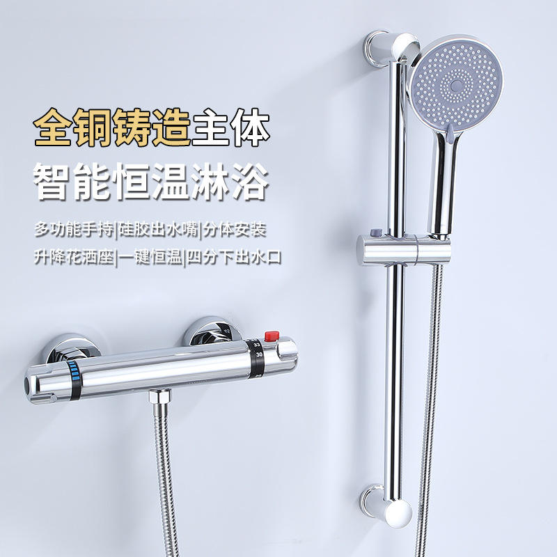 Ensemble de douche thermostatique en cuivre et céramique avec mitigeur, pommeau de pluie rond, poignée unique, installation encastrée, finition chromée