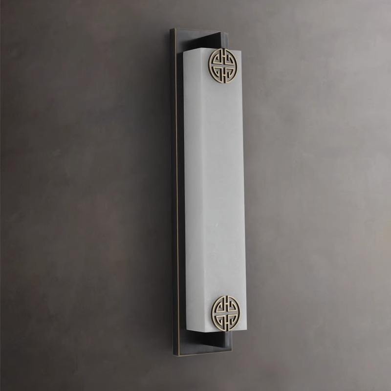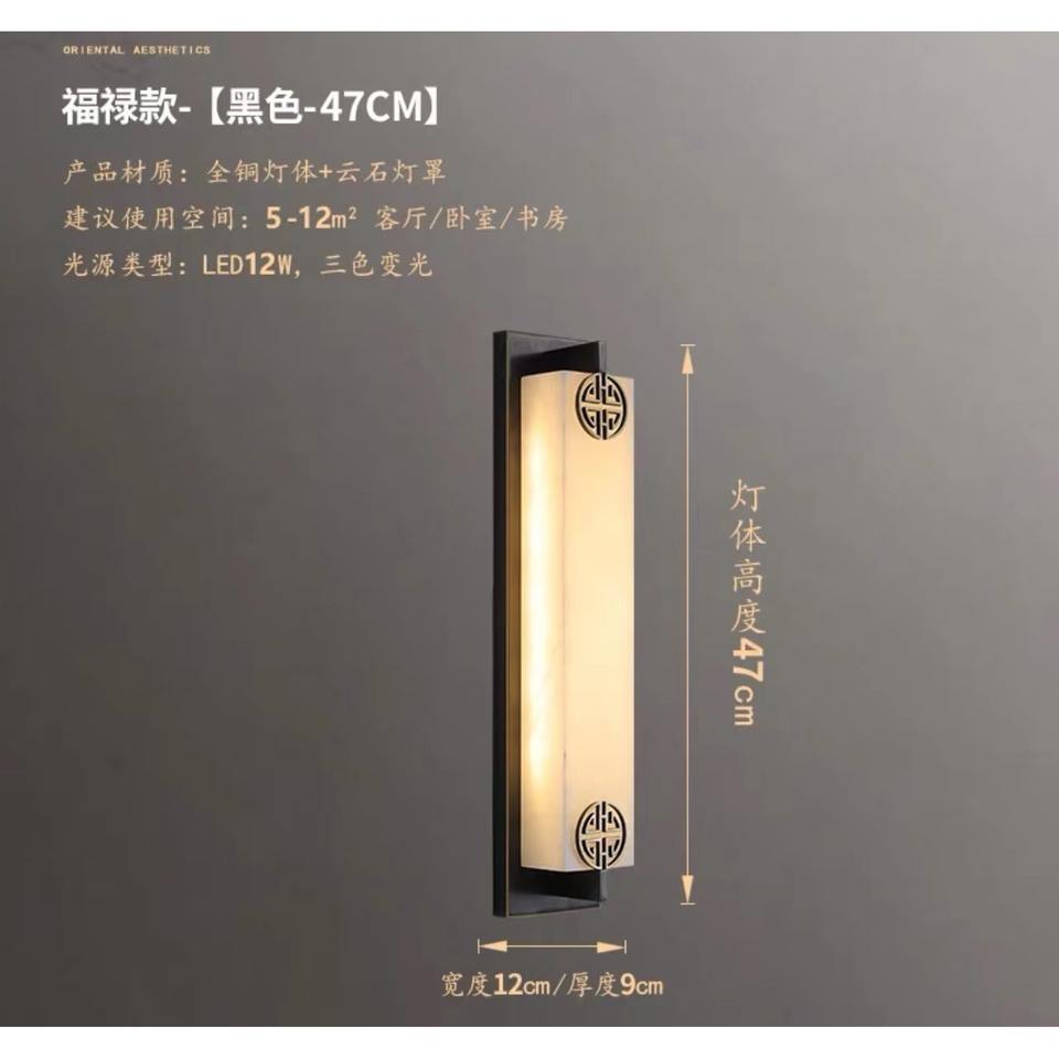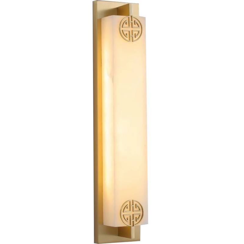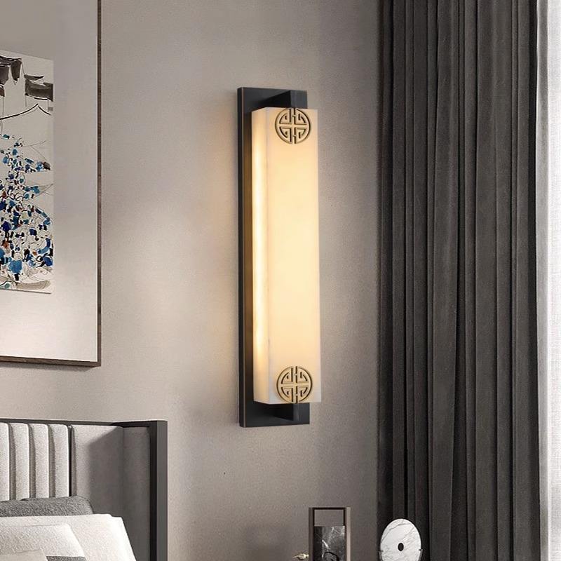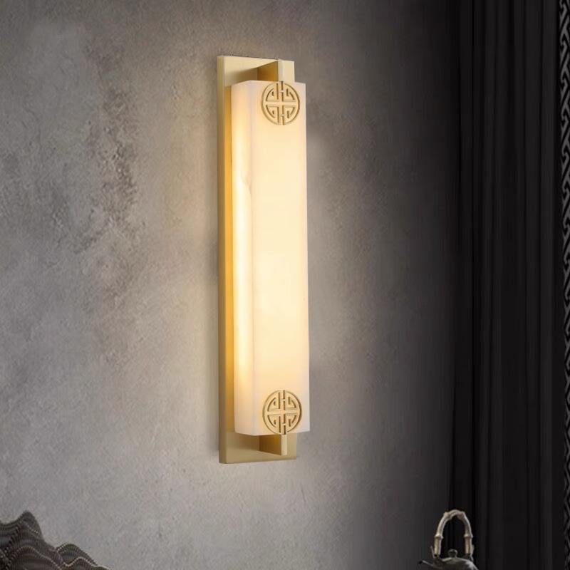 Applique murale haut de gamme en marbre et cuivre massif, style chinois moderne, bande longue pour salon, fond de télévision, chambre à coucher, chevet - Sans câblage