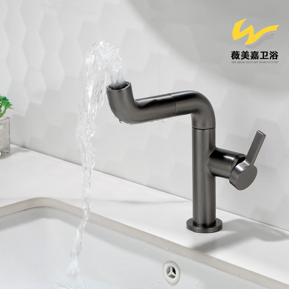 Robinet de lavabo minimaliste tout en cuivre, unité unique, universel, rotatif, extractible, finition or brossé chaud et froid, salle de bain