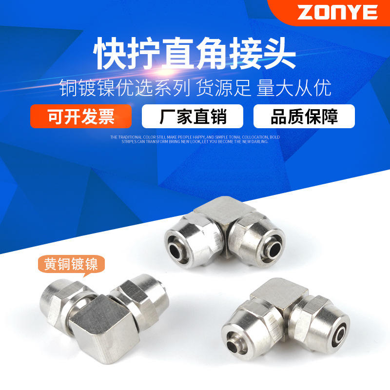 Raccord pneumatique à connexion rapide de type L à angle droit en cuivre nickelé pour connecteur de tuyau d'air