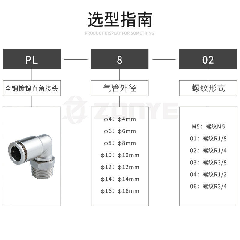 Coude à angle droit tout en cuivre nickelé, haute température, haute pression, résistant à la corrosion, raccord rapide pneumatique pour tuyau d'air